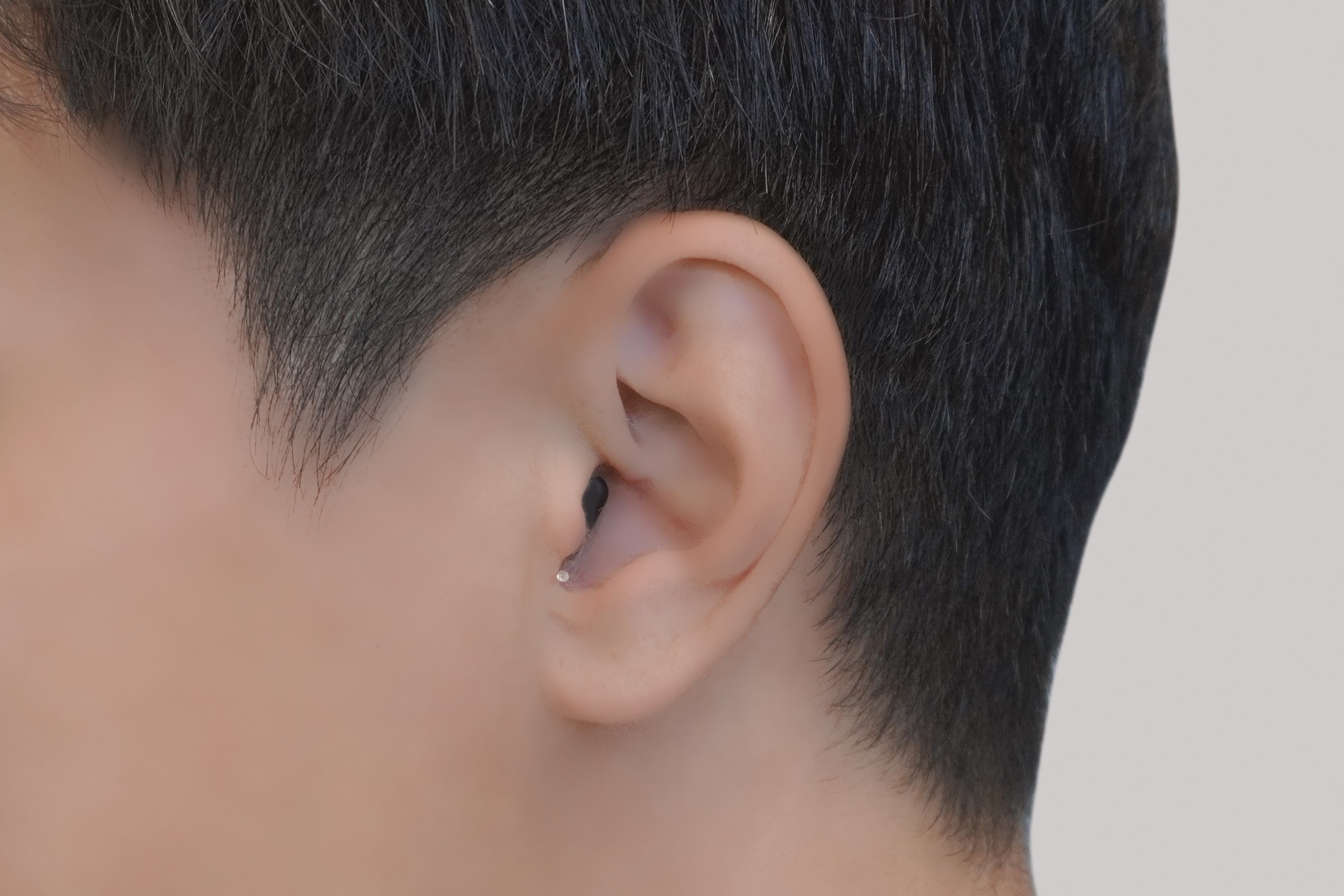 耳あな型(CIC/完全耳あな型に近いタイプ)で、ほとんど外から見えにくいデザインです。